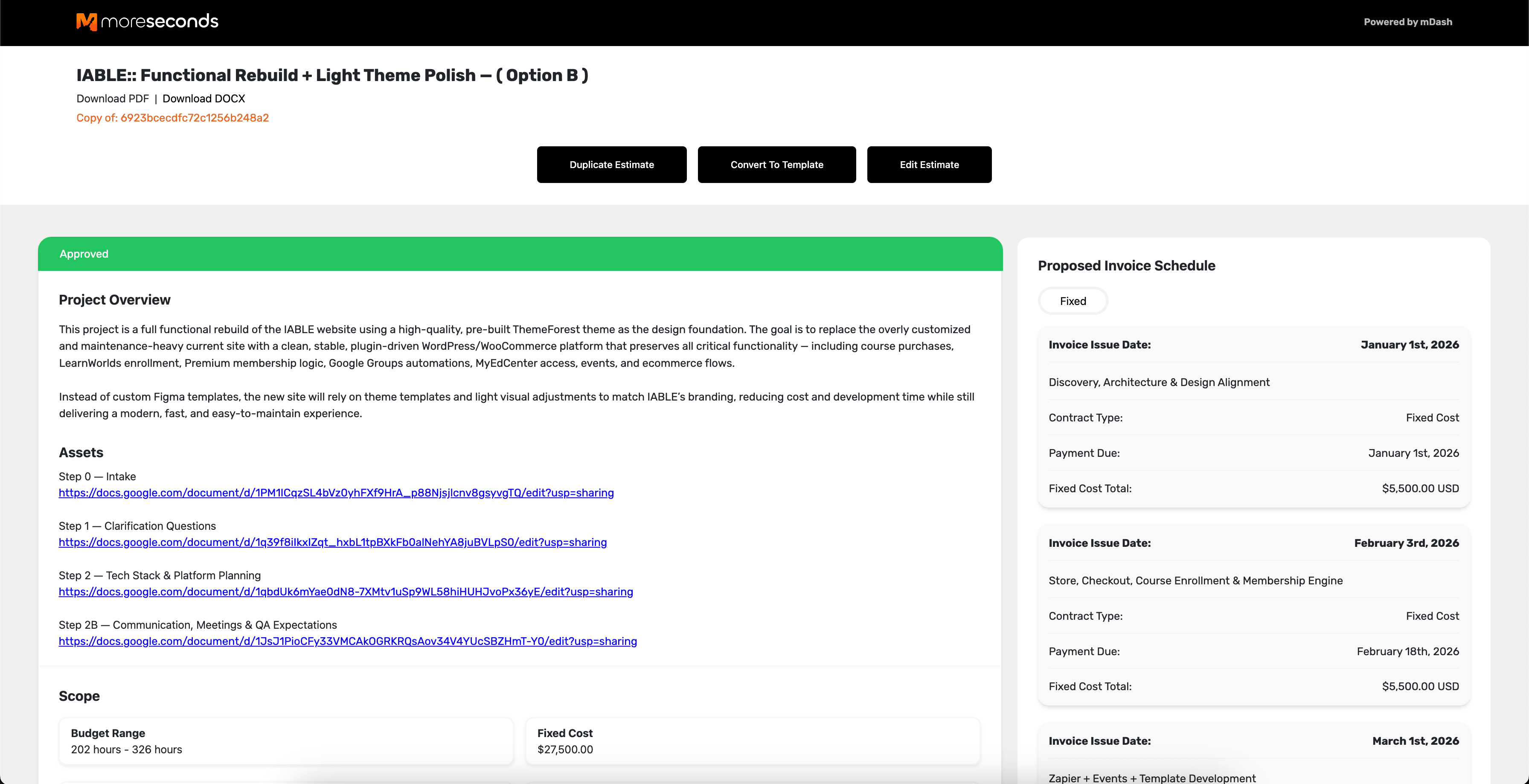 We built our Scoping Tool to organize deliverables, milestones, pricing, and approvals in one place. That gives everyone a shared source of truth before development begins.